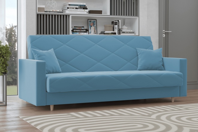 Диван Санта-2 – отличается простыми, но изящными линиями, характерными для скандинавского дизайна, и поддерживается на прочных деревянных ножках, добавляющих устойчивость и эстетический внешний вид. Удобные подлокотники придают дополнительный комфорт, а большое спальное место делает его идеальным выбором для гостей или повседневного использования.