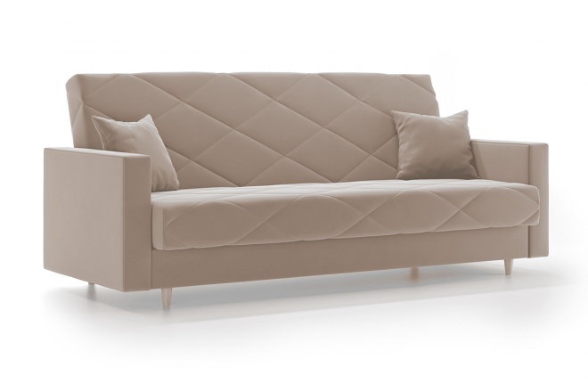 Диван Санта-2 – отличается простыми, но изящными линиями, характерными для скандинавского дизайна, и поддерживается на прочных деревянных ножках, добавляющих устойчивость и эстетический внешний вид. Удобные подлокотники придают дополнительный комфорт, а большое спальное место делает его идеальным выбором для гостей или повседневного использования.