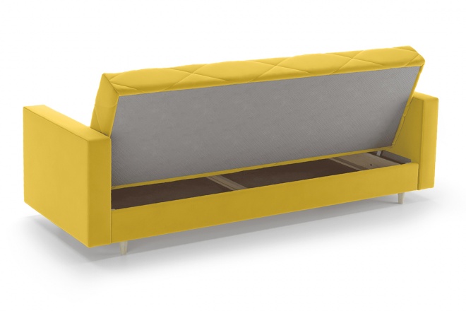 Самый популярный вид механизмов. Работает максимально просто - сидение приподнимается вверх, открывая бельевой ящик, а спинка в этот момент опускается в горизонтальное... положение, затем сиденье опускается вниз. Сборка: сиденье поднимается вверх до щелчка, затем, нажатием на сидение вниз спинка автоматически поднимается и диван принимает исходное положение. Подобный диван нужно ставить на небольшом расстоянии от стены, 10..13 см.