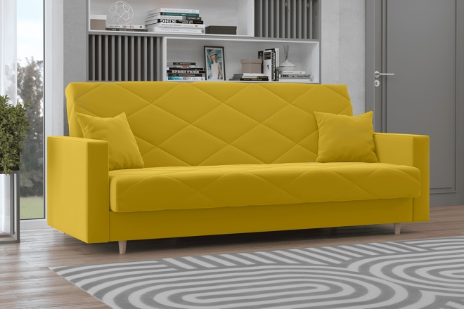 Диван Санта-2 – отличается простыми, но изящными линиями, характерными для скандинавского дизайна, и поддерживается на прочных деревянных ножках, добавляющих устойчивость и эстетический внешний вид. Удобные подлокотники придают дополнительный комфорт, а большое спальное место делает его идеальным выбором для гостей или повседневного использования.