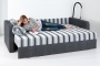 Сидение выдвигается вперед, открывая бельевой ящик, а спинка опускается на освободившееся...