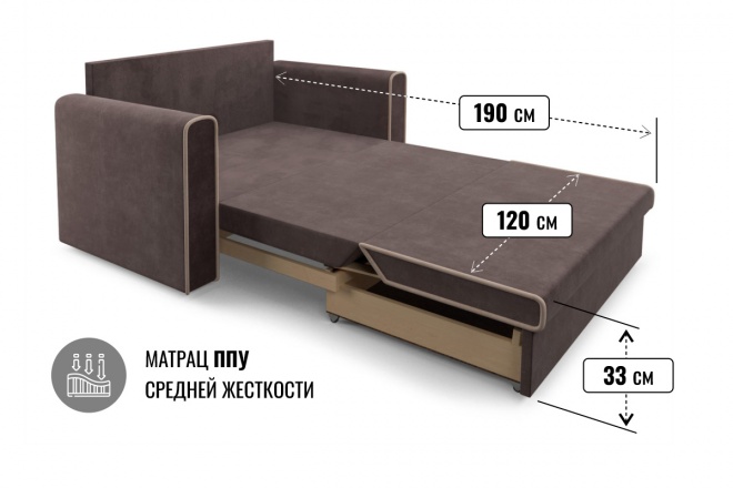 Спальное место: 120 × 190 см