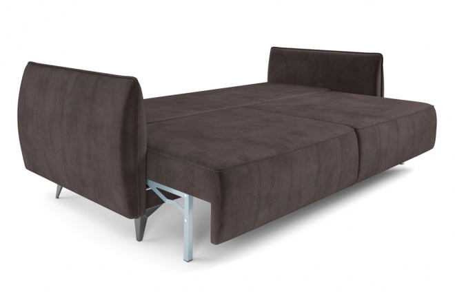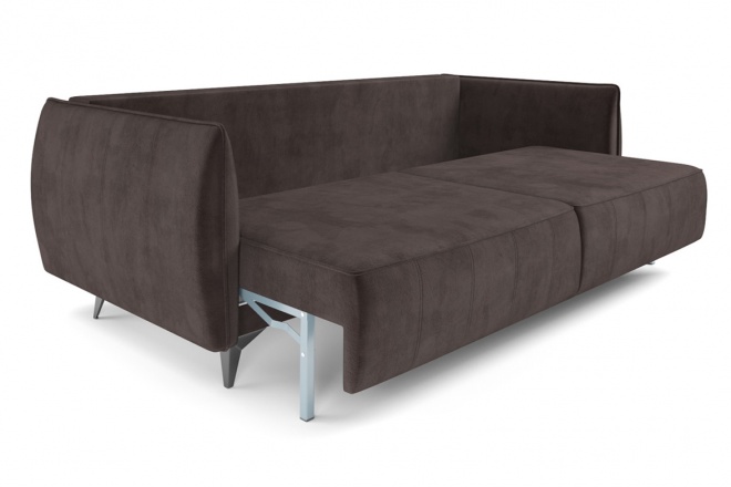 Диван Дейзимеханизм трансформации Пантограф или «Тик-Так» имеет ряд преимуществ, среди которых можно выделить высокую степень надежности при длительной эксплуатации, а также легкость трансформации дивана в спальное место (сиденье поднимается вверх, перемещается вперед, а затем, со щелчком, опускается вниз). Независимый пружинный блок, используемый в качестве наполнителя для дивана «Дейзи», создает поверхность с ортопедическим эффектов, позволяющим равномерно распределять нагрузку на все тело. Ящик для белья ЛДСП под сидушкой. Высокие металлические ножки позволяют делать уборку под диваном