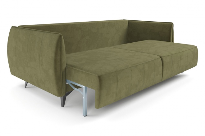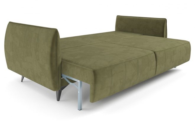 Диван Дейзимеханизм трансформации Пантограф или «Тик-Так» имеет ряд преимуществ, среди которых можно выделить высокую степень надежности при длительной эксплуатации, а также легкость трансформации дивана в спальное место (сиденье поднимается вверх, перемещается вперед, а затем, со щелчком, опускается вниз). Независимый пружинный блок, используемый в качестве наполнителя для дивана «Дейзи», создает поверхность с ортопедическим эффектов, позволяющим равномерно распределять нагрузку на все тело. Ящик для белья ЛДСП под сидушкой. Высокие металлические ножки позволяют делать уборку под диваном