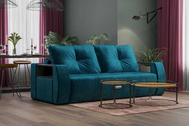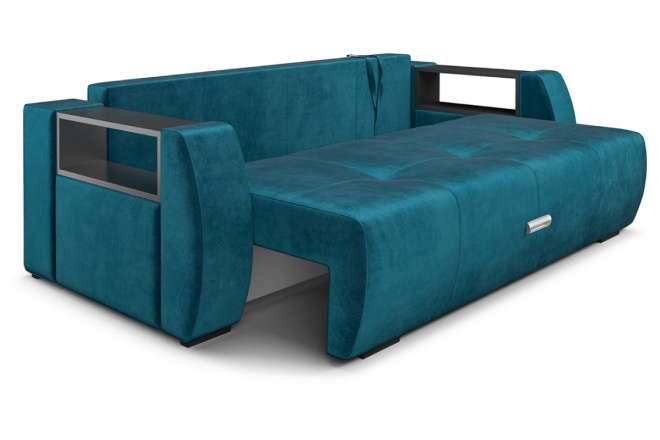Диван Филадельфияпросторный диван-кровать со встроенными полочками в подлокотниках и декоративной утяжкой на спальном месте. Простой и надежный механизм Еврокнижка. Верхние накладки на подлокотниках позволяют их использовать в качестве подставки для напитков или хранении мелких вещей. Ящик для белья из ЛДСП