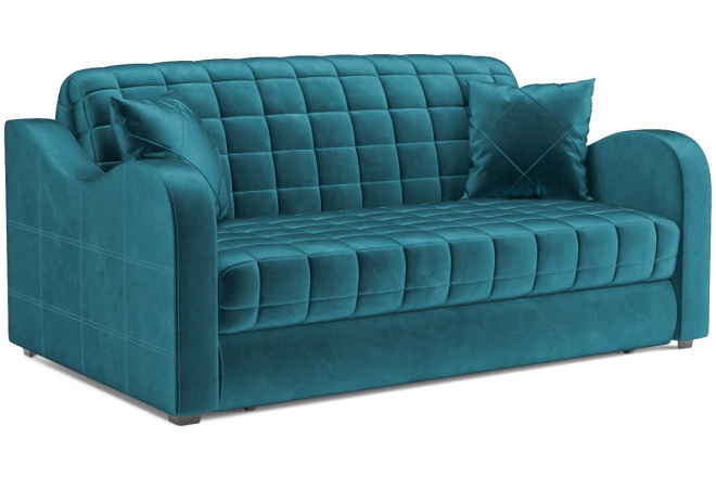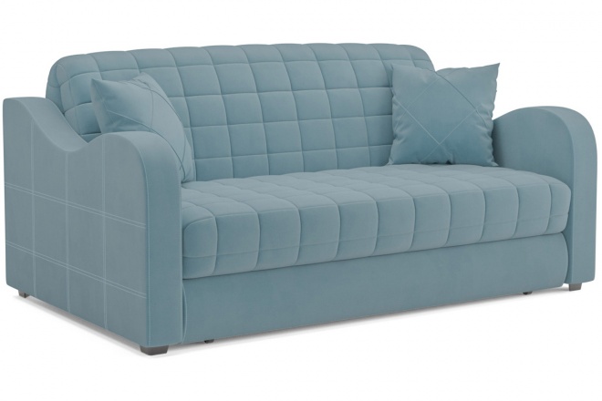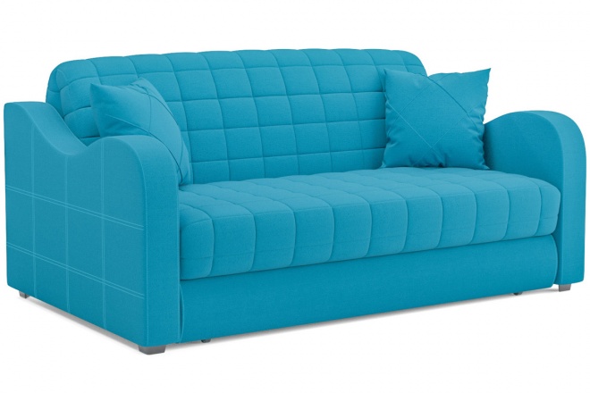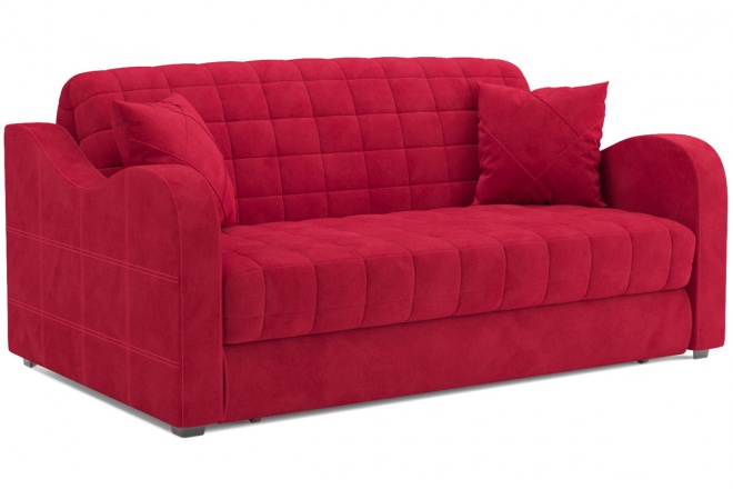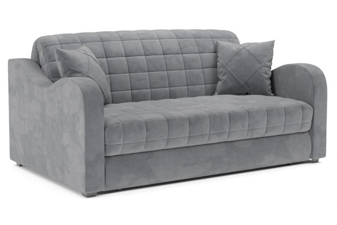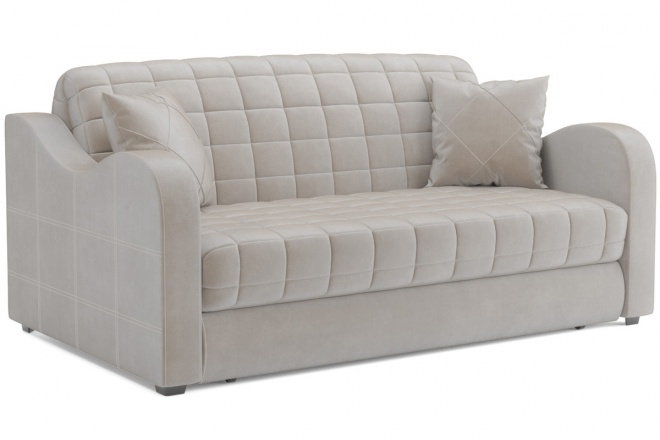 Надежный механизм трансформации, легко раскладывается, не царапает пол. Подлокотники с плавными формами и утяжки по всей поверхности спального места и на подлокотниках. Съемный чехол со спального места. Боковые подушки в комплекте.
