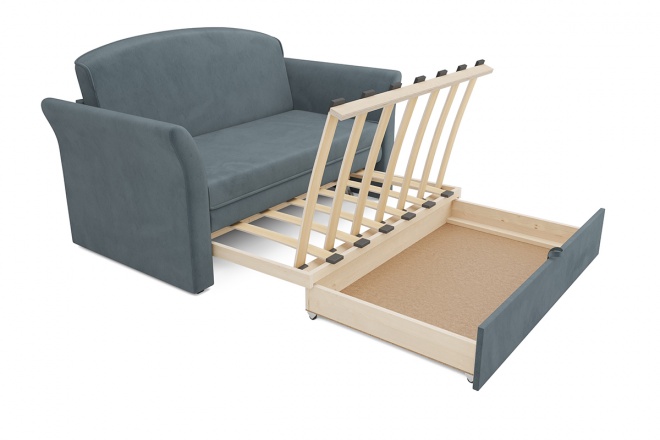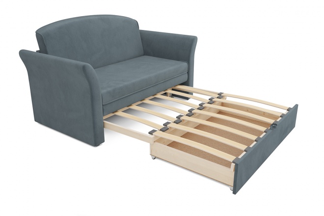 Диван Линдакомпактный диван-кровать с красивыми плавными формами. Диван раскладывается в кровать при помощи выкатного механизма. Ровная поверхность для сна. В качестве основания используются березовые ламели. Матрац - высокоэластичный ППУ (мебельный поролон). Основание на деревянных латах равномерно распределяет нагрузку на спальное место. Для хранения подушек и постельных вещей предусмотрен ящик для белья.