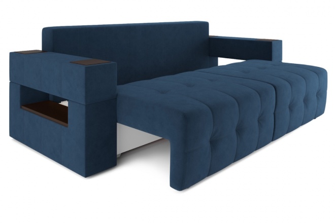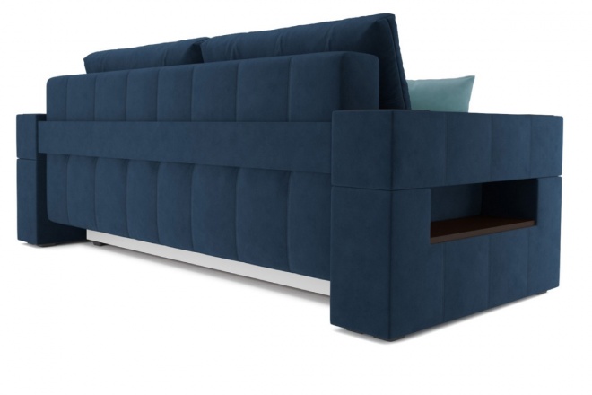 Диван Мадридпросторный диван-кровать со встроенными полочками в подлокотниках. Простой и надежный механизм Еврокнижка. Верхние накладки на подлокотниках позволяют их использовать в качестве подставки для напитков или хранении мелких вещей. Ящик для белья из ЛДСП