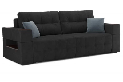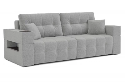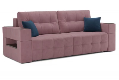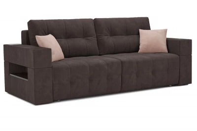 Диван Мадридпросторный диван-кровать со встроенными полочками в подлокотниках. Простой и надежный механизм Еврокнижка. Верхние накладки на подлокотниках позволяют их использовать в качестве подставки для напитков или хранении мелких вещей. Ящик для белья из ЛДСП