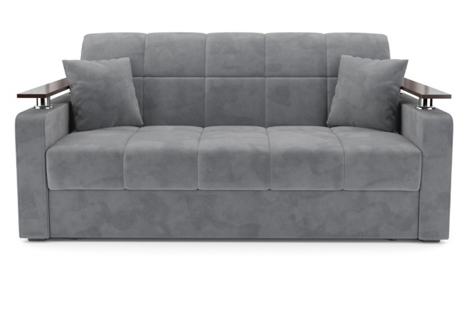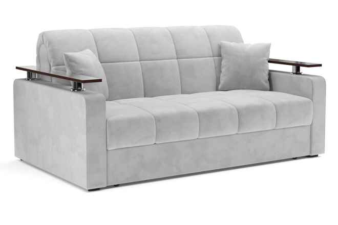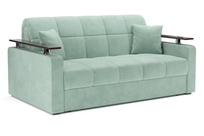 Диван Ореганопросторный диван-кровать с деревянными накладками на подлокотниках, которые позволяют их использовать в качестве подставки для напитков или хранении мелких вещей Механизм раскладной вперед - аккордеон на металлокаркасе. Надежный механизм трансформации, легко раскладывается, не царапает пол. Ортопедическое основание на латах, съемный чехол, ППУ матрац, декоративные подушки