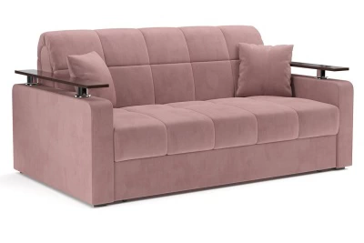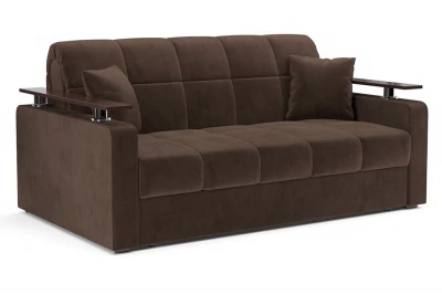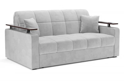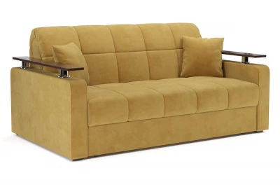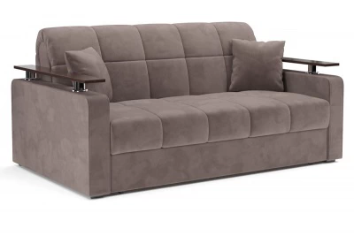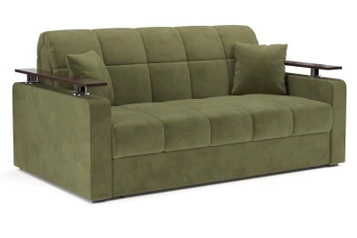 Диван Ореганопросторный диван-кровать с деревянными накладками на подлокотниках, которые позволяют их использовать в качестве подставки для напитков или хранении мелких вещей Механизм раскладной вперед - аккордеон на металлокаркасе. Надежный механизм трансформации, легко раскладывается, не царапает пол. Ортопедическое основание на латах, съемный чехол, ППУ матрац, декоративные подушки