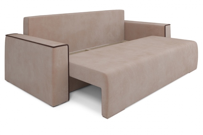 Диван Риопросторный диван-кровать с кантом на подлокотниках. Простой и надежный механизм Еврокнижка. Декоративные подушки, ящик для белья из ЛДСП