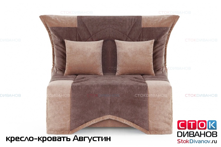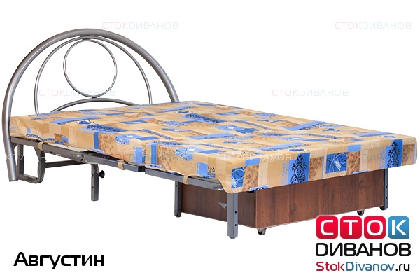 Кресло-кровать Августинкомпактное кресло-кровать без подлокотников. Механизм - раскладной вперед, аккордеон на металлокаркасе. Надежный механизм трансформации, легко раскладывается, не царапает пол. Ортопедическое основание на латах, ППУ матрац, съемный чехол на молнии