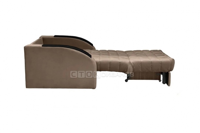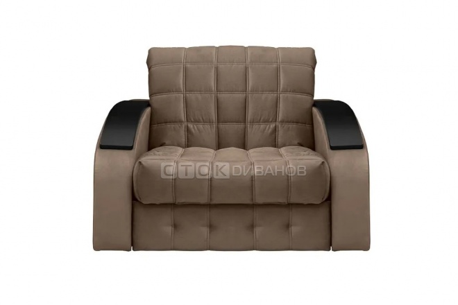 Кресло-кровать Брауникресло-кровать со спальным местом раскладное вперед. Надежный механизм трансформации аккордеон на металлокаркасе - легко раскладывается, не царапает пол. Ортопедическое основание на латах, ППУ матрац, съемный чехол. Декоративные накладки на подлокотниках, материал МДФ, цвет темный.
