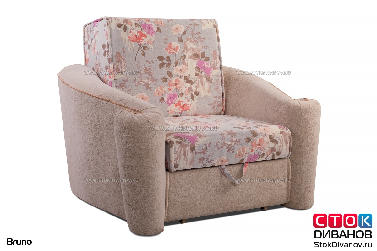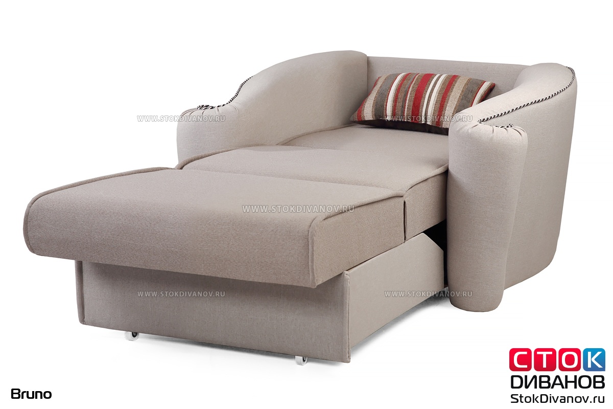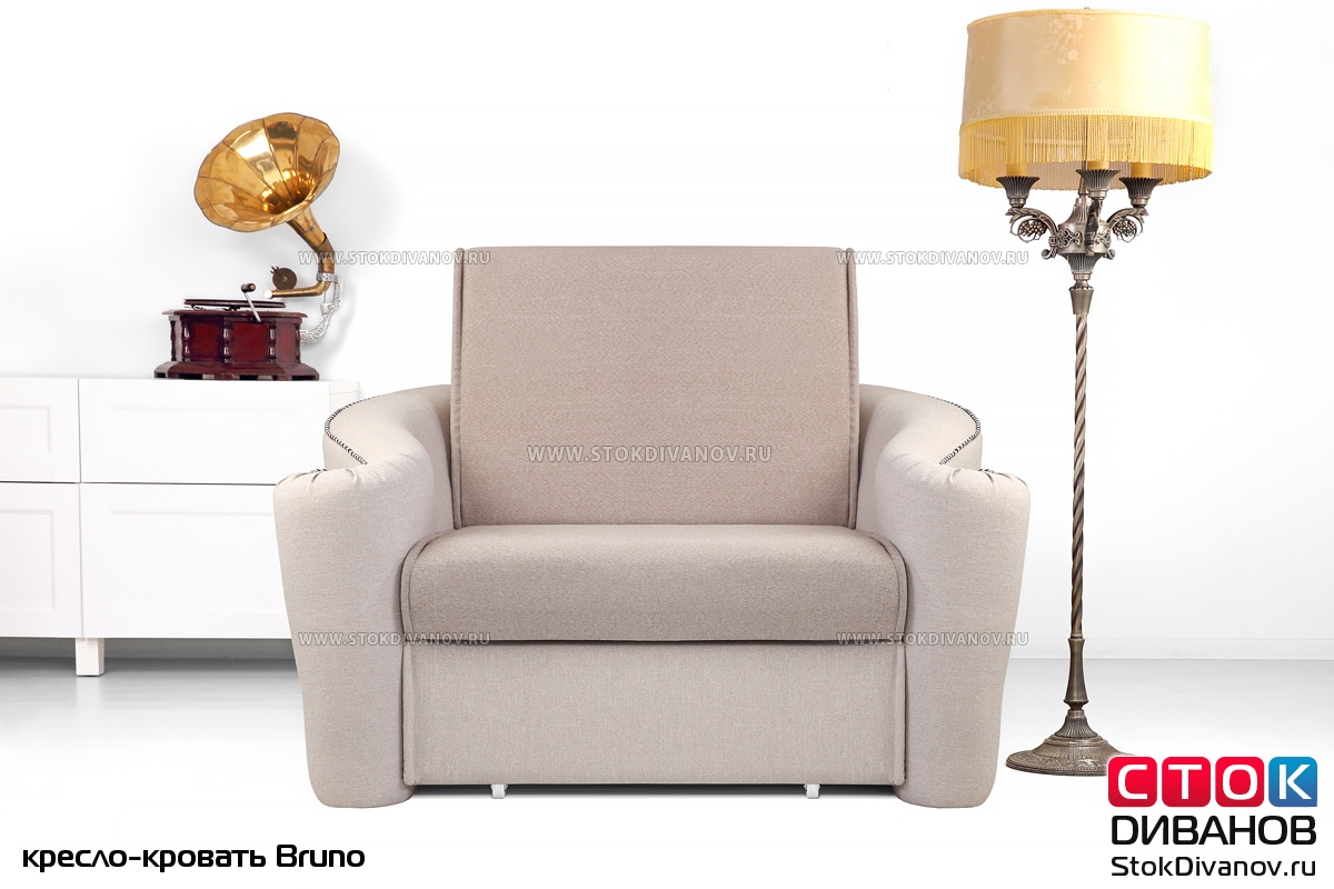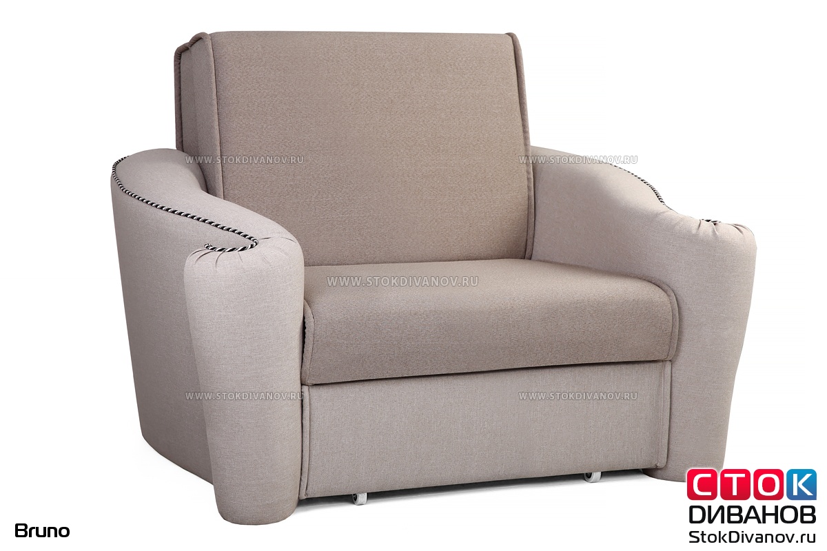 Кресло-кровать Brunoкресло-кровать раскладное вперед. Надежный и простой механизм трансформации - аккордеон. Ящик для белья. Кант из декоративного шнура на подлокотниках.