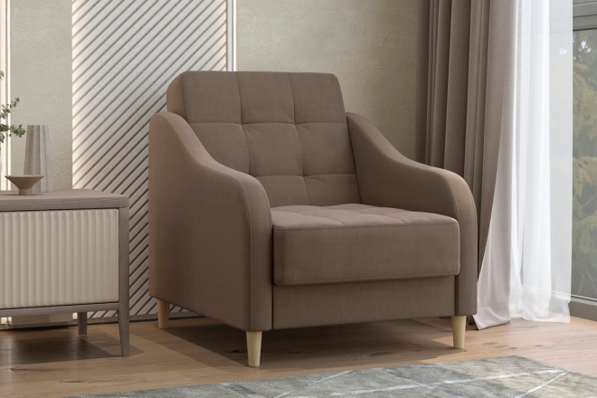 Кресло Швеция – на деревянных ножках с изящными подлокотниками станет настоящим украшением вашего интерьера. Наполнитель места для сидения — качественный мебельный поролон (ППУ) и блок независимых пружин. Это кресло станет любимым местом для всей семьи, где можно провести время за просмотром фильма, чтением книги или просто расслабиться после долгого дня. Подойдет к интерьерам в скандинавском, неоклассическом и современном стиле. Отлично смотрится в комплекте с диванами этой серии.