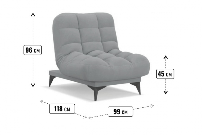 Кресло Валенсиякомпактное и уютное кресло-кровать со спальным местом на основе механизма Клик-кляк. Спинка может принимать положение «сидя», «полусидя» и «лежа». Ортопедическое основание - латы. Матрац на основе ППУ. Высокие ножки позволяют делать уборку при помощи робота-пылесоса. Ножки выполнены из металла, цвет чёрный