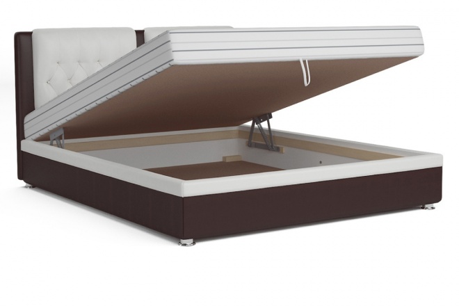 Кровать Беллакровать с мягким изголовьем с каретной стяжкой и подъемным механизмом. Несъемный матрас с зависимыми пружинами. Ящик для белья из ЛДСП