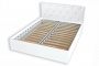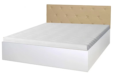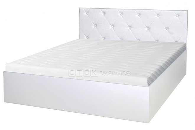 Кровать Диана – Корпус: ЛДСП Белый, Изголовье - любая ткань из каталога, на фото - искусственная кожа, ортопедическое основание - металлокаркас, латы; матрас не входит в стоимость