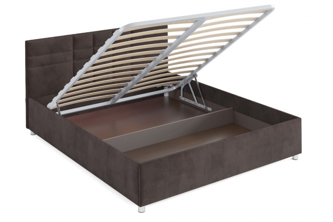 Кровать Дримкровать с мягким изголовьем с линейной стежкой и подъемным механизмом. Ортопедическое основание (ламели). Ящик для белья из ЛДСП. Матрац в комплект не входит