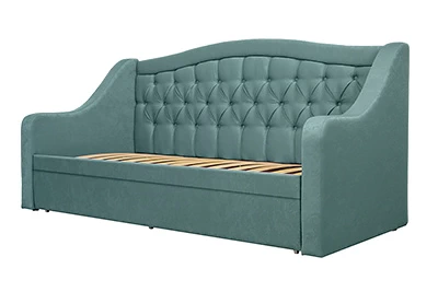 Кровать Версаль – компактная кровать с ортопедическим основанием. Под спальным местом вместительные выдвижные ящики ЛДСП, направляющие 100 %. Каретная стяжка на спинке. Матрас в комплект не входит!