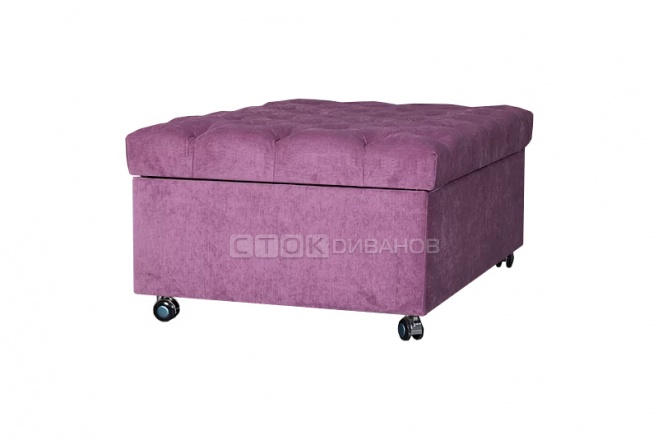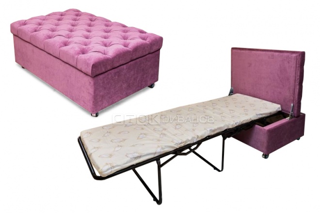Пуфик Калипсо-2 – необычный раскладной пуфик со спальным местом. Пуфик раскладывается в односпальную кровать при помощи механизма трансформации - французская раскладушка. Матрац на основе пенополиуретана (ППУ), толщина матраца - 5 см. Сиденье выполнено в виде каретной стяжки. Пуфик можно перемещать на колесиках.