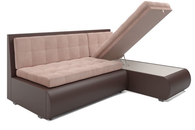 Угловой диван Карнак – компактный угловой диван-кровать без подлокотников. Универсальное расположение угла. Простой и надежный механизм Дельфин. ППУ матрац, ящик для белья из ЛДСП