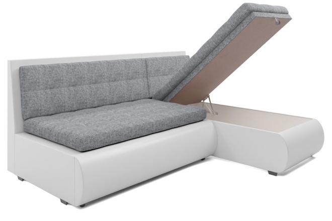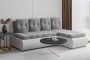 Угловой диван Карнаккомпактный угловой диван-кровать без подлокотников. Универсальное расположение угла. Простой и надежный механизм Дельфин. ППУ матрац, ящик для белья из ЛДСП
