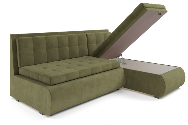 Угловой диван Карнаккомпактный угловой диван-кровать без подлокотников. Универсальное расположение угла. Простой и надежный механизм Дельфин. ППУ матрац, ящик для белья из ЛДСП