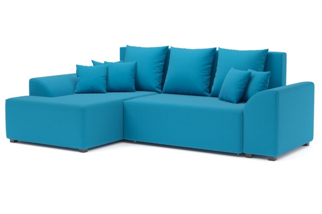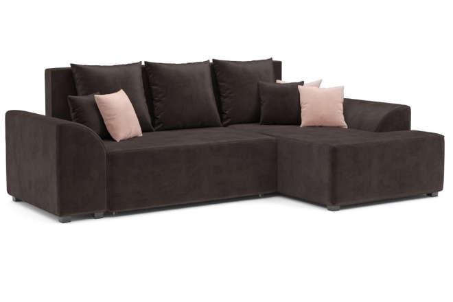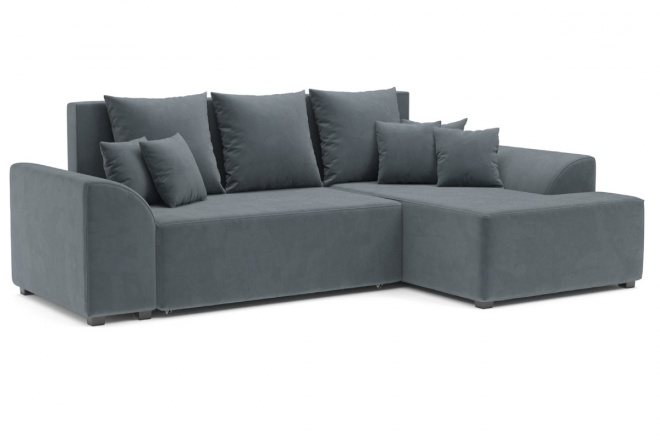 Угловой диван Ливерпульугловой диван-кровать в современном стиле. Декоративные подушки. Простой и надежный механизм Еврокнижка. Ящик для белья из ЛДСП, ППУ матрац