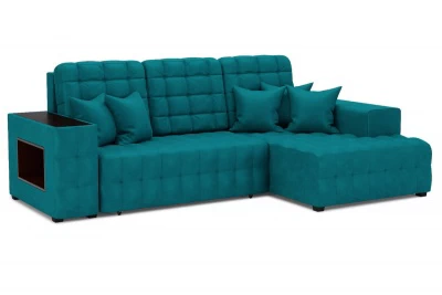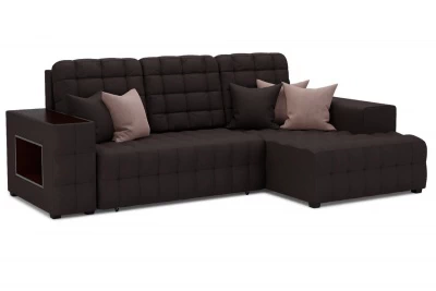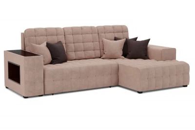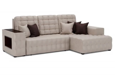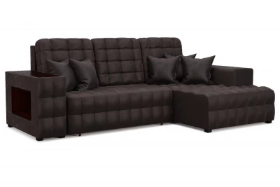 Угловой диван Вегаспросторный угловой диван-кровать со встроенной полочкой в подлокотнике и декоративной накладкой. Простой и надежный механизм Еврокнижка. Ящик для белья из ЛДСП, ППУ матрац, декоративная прострочка на всем диване и подушки