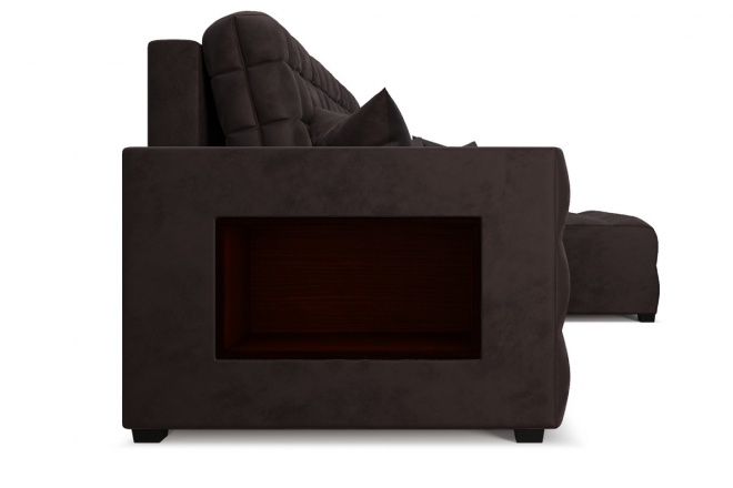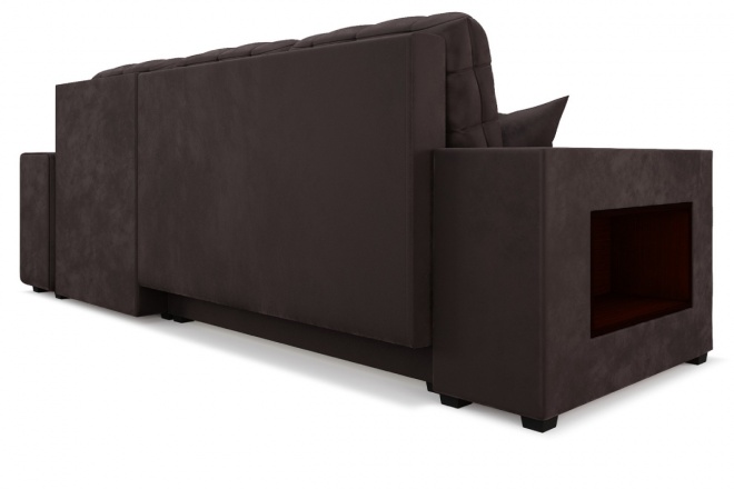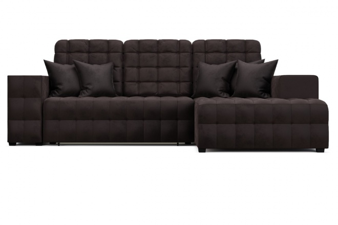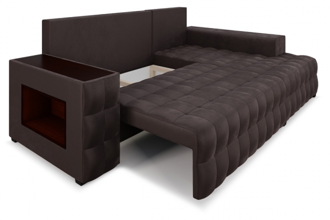 Угловой диван Вегаспросторный угловой диван-кровать со встроенной полочкой в подлокотнике и декоративной накладкой. Простой и надежный механизм Еврокнижка. Ящик для белья из ЛДСП, ППУ матрац, декоративная прострочка на всем диване и подушки