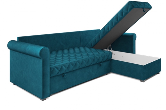 Угловой диван Винтаж-2угловой диван-кровать в классическом стиле с ромбовидной стежкой на спальном месте и подушках. Закругленные подлокотники, универсальное расположение угла. Ящик для белья из ЛДСП. Простой и надежный механизм Дельфин. ППУ матрац, декоративные подушки