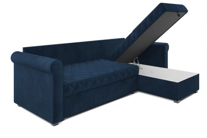 Угловой диван Винтаж-2угловой диван-кровать в классическом стиле с ромбовидной стежкой на спальном месте и подушках. Закругленные подлокотники, универсальное расположение угла. Ящик для белья из ЛДСП. Простой и надежный механизм Дельфин. ППУ матрац, декоративные подушки