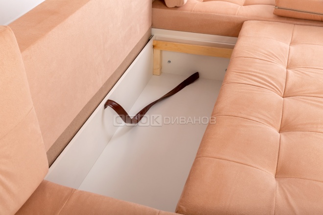 Сидение выдвигается вперед, открывая бельевой ящик, а спинка опускается на освободившееся...