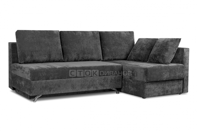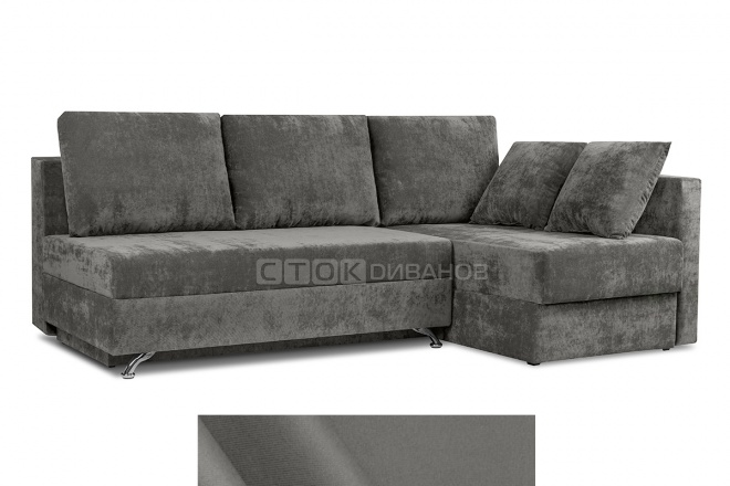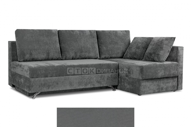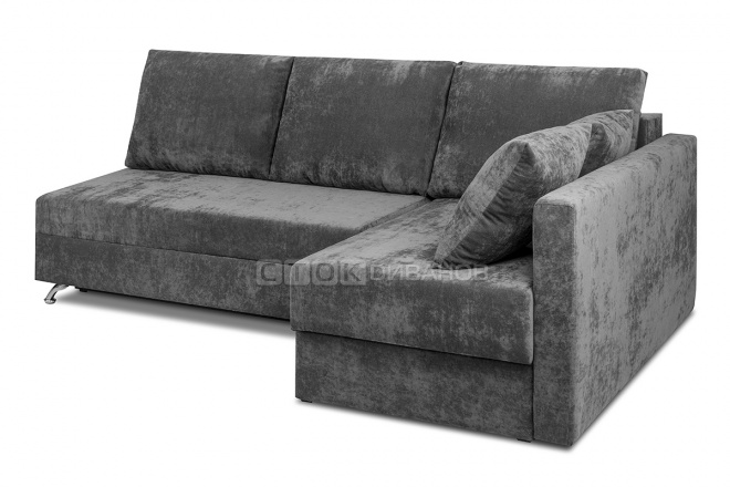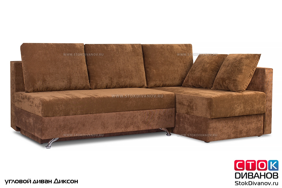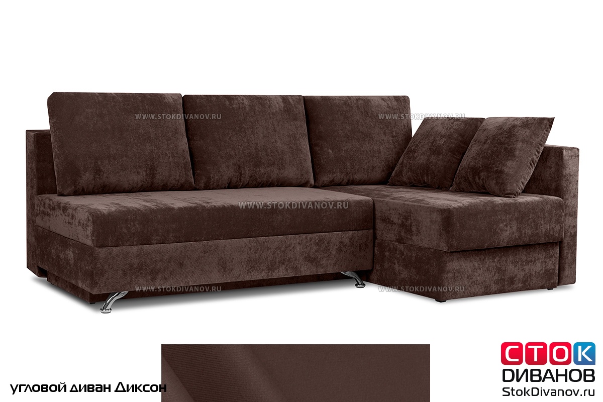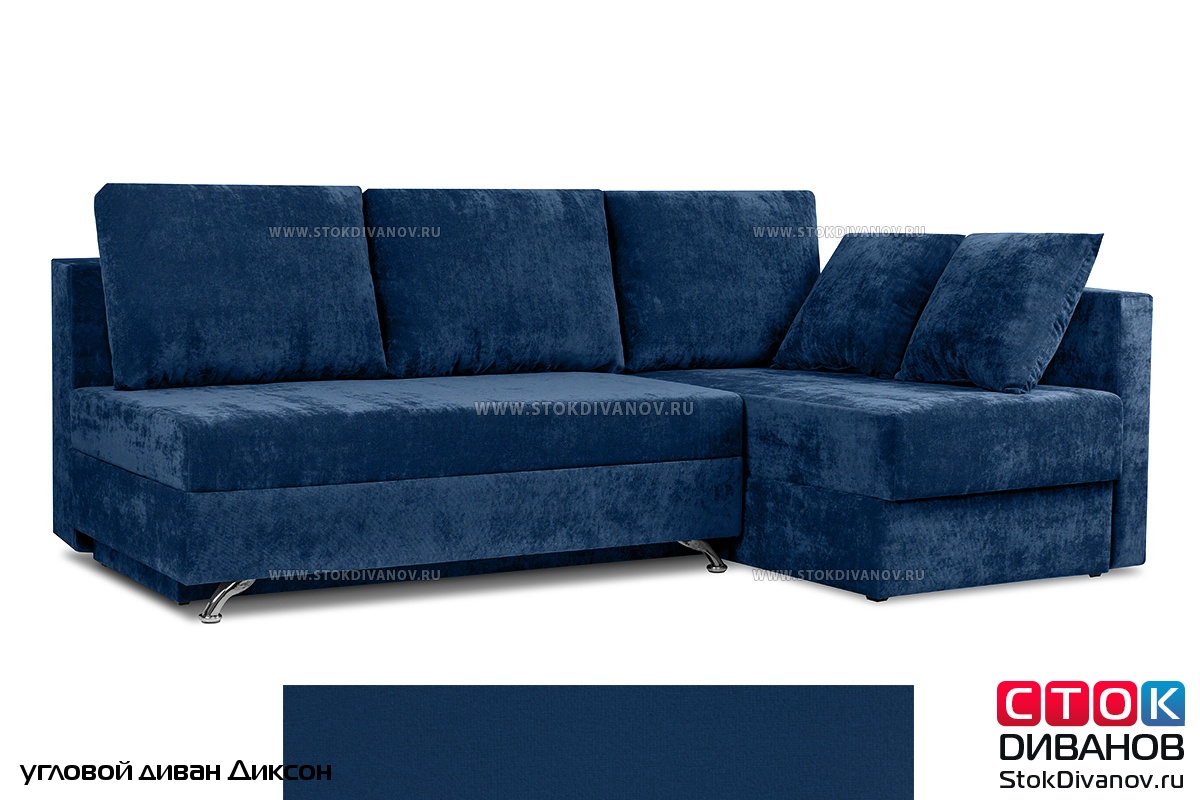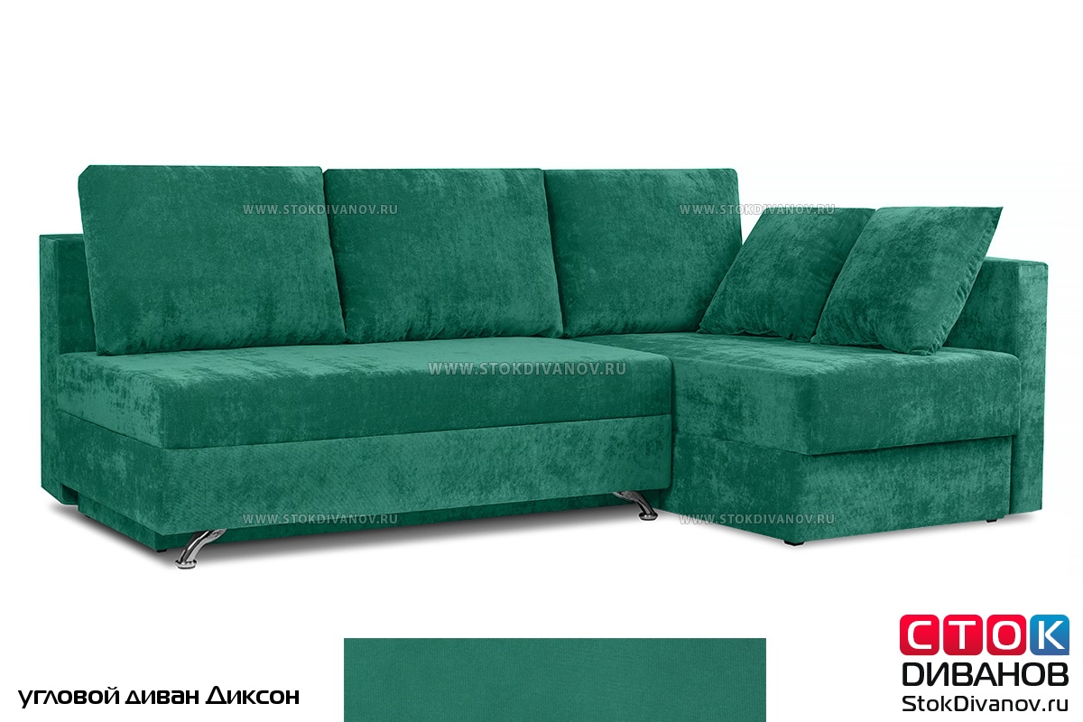 Угловой диван Диксон – компактный угловой диван со спальным местом. Простой и надежный механизм трансформации - Еврокнижка. Один длинный подлокотник по длине всего спального места. В основе дивана используется пружинный блок (зависимый). Ящик для белья.