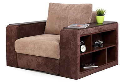 Подлокотники выполнены с верхними накладками из МДФ, которые могут служить подставкой для напитков, журналов, пульта ДУ или телефона. В одном из подлокотников встроены удобные полочки для хранения полезных...