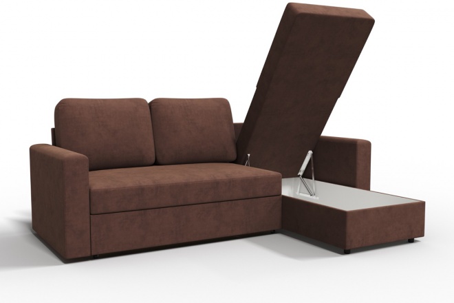 Движением вперед из-под основного сиденья выкатывается дополнительная секция. Потом она приподнимается за специальную петлю и устанавливается... в одной плоскости с основным сиденьем, образуя при этом полноценное спальное место. Сами манипуляции напоминают движение ныряющего дельфина, отсюда и название. Это надежный и простой механизм, управляться с которым сможет и ребенок. "Дельфин" выдерживает большую нагрузку и хорошо подходит для постоянного использования, хотя его, как и все «выезжающие» диваны, трудно раскладывать на коврах с высоким ворсом. Спальное место получается ровным, высоким и просторным. В угловых диванах, обыкновенно, есть довольно вместительный бельевой ящик, который, к сожалению, невозможен в прямых диванах с "дельфином". Диван с таким механизмом можно поставить вплотную к стене.