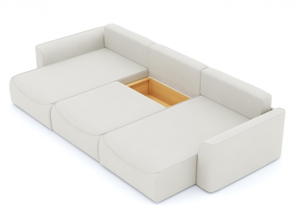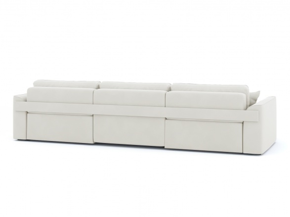 Сидение выдвигается вперед, открывая бельевой ящик, а спинка опускается на освободившееся... место. В связи с особенностью механизма подобный диван ставится на расстоянии 2-3 см. от стены. В разложенном виде такие диваны имеют достаточно большое и абсолютно ровное спальное место, высота которого соответствует кроватному.