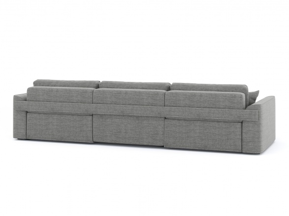 Сидение выдвигается вперед, открывая бельевой ящик, а спинка опускается на освободившееся... место. В связи с особенностью механизма подобный диван ставится на расстоянии 2-3 см. от стены. В разложенном виде такие диваны имеют достаточно большое и абсолютно ровное спальное место, высота которого соответствует кроватному.