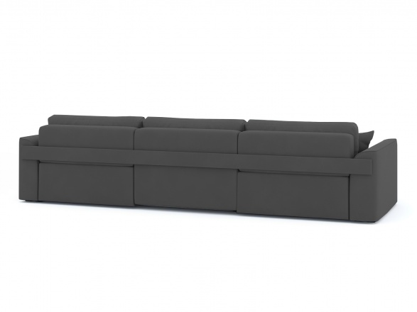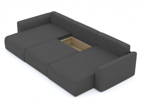 Сидение выдвигается вперед, открывая бельевой ящик, а спинка опускается на освободившееся... место. В связи с особенностью механизма подобный диван ставится на расстоянии 2-3 см. от стены. В разложенном виде такие диваны имеют достаточно большое и абсолютно ровное спальное место, высота которого соответствует кроватному.