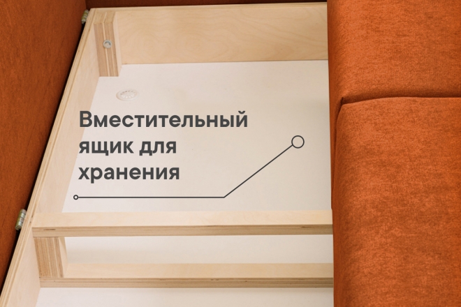 Диван... оборудован двумя ящиками для белья. Это позволяет хранить постельное белье и другие вещи в одном месте, что экономит пространство в комнате.