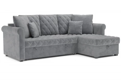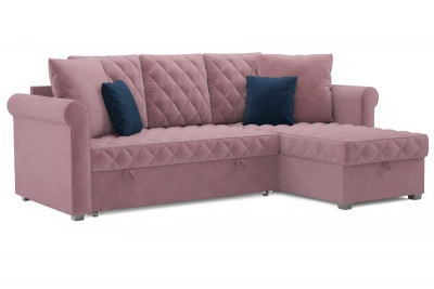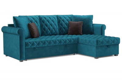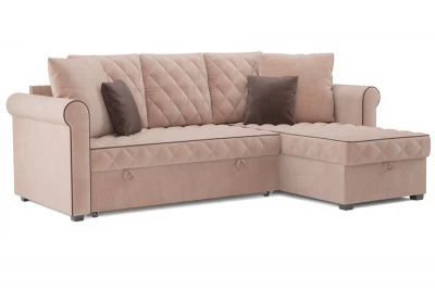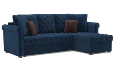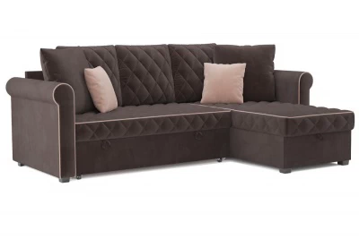 Угловой диван Винтаж-2угловой диван-кровать в классическом стиле с ромбовидной стежкой на спальном месте и подушках. Закругленные подлокотники, универсальное расположение угла. Ящик для белья из ЛДСП. Простой и надежный механизм Дельфин. ППУ матрац, декоративные подушки