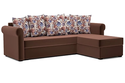 Угловой диван Винтажугловой диван-кровать в классическом стиле. Закругленные подлокотники, универсальное расположение угла. Ящик для белья из ЛДСП. Простой и надежный механизм Дельфин. ППУ матрац
